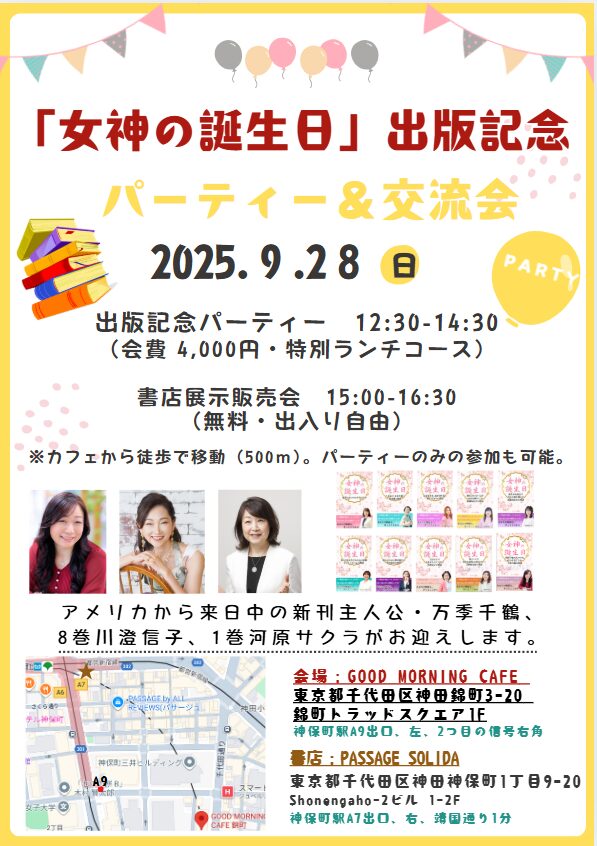 2025年7月より、神保町「PASSAGE SOLIDA」書店にて『女神の誕生日』シリーズを展示・販売。